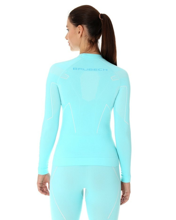Bluza damska THERMO została wykonana w technologii bezszwowej z dwuwarstwowej oddychającej dzianiny o średniej grubości. Produkty z kolekcji mają wyjątkowe cechy termoizolacyjne, dzięki czemu utrzymują optymalną temperaturę ciała. Chronią zarówno przed wyziębieniem, jaki i przegrzaniem organizmu. W strefach o wzmożonej potliwości zastosowano strukturę siatki wspomagającą transport wilgoci. Budowa dzianiny podkreśla rzeźbę ciała, a elastyczny i dopasowany materiał zapewnia swobodę ruchów. Dodatkowo odzież posiada właściwości antyalergiczne i antybakteryjne.