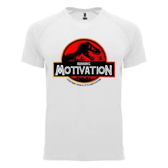 Męska koszulka sportowa wykonana z oddychającego i szybkoschnącego materiału. Koszulka z serii motywujących. Nie masz czasami ochoty na trening? Pogoda nie rozpieszcza? Upewnij się, że nie goni żaden prehistoryczny zwierz, załóż koszulkę i biegnij.