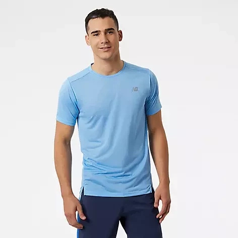 - Koszulka do biegania dla mężczyzn z krótkim rękawem została wykonana z lekkiego materiału polyknit, który wykorzystuje naszą wysokiej jakości technologię NB DRYx, która odprowadza wilgoć, pomagając zdominować trening.