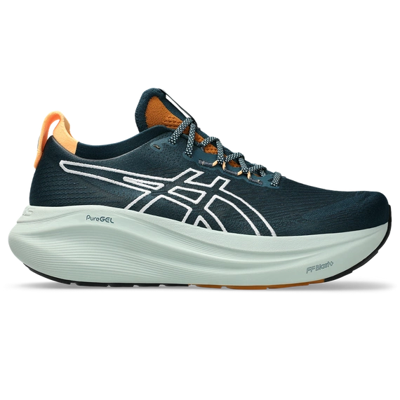 Obuwie do biegania GEL-NIMBUS 27 TR Nature Bathing zaprojektowano, aby zapewnić użytkownikowi jak najwięcej wygody podczas biegania i pomóc mu delektować się spokojem. A dzięki maksymalnej amortyzacji, lepszej niż kiedykolwiek wcześniej, możesz biec dalej w całkowitym komforcie.