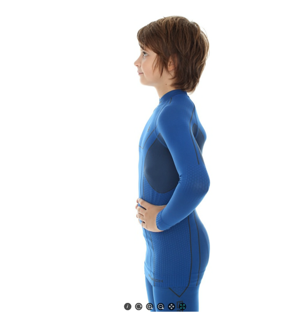 Bluza chłopięca THERMO została wykonana w technologii bezszwowej z dwuwarstwowej oddychającej dzianiny o średniej grubości. Produkty z kolekcji mają wyjątkowe cechy termoizolacyjne, dzięki czemu utrzymują optymalną temperaturę ciała. Chronią zarówno przed wyziębieniem, jaki i przegrzaniem organizmu. W strefach o wzmożonej potliwości zastosowano strukturę siatki wspomagającą transport wilgoci. Budowa dzianiny podkreśla rzeźbę ciała, a elastyczny i dopasowany materiał zapewnia swobodę ruchów. Dodatkowo odzież posiada właściwości antyalergiczne i antybakteryjne.